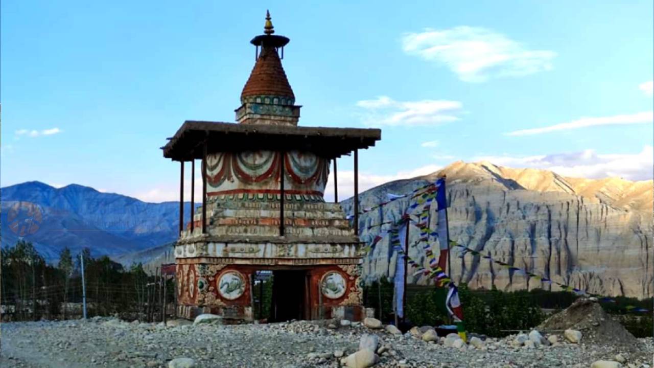 Descend to Jomsom through the Kali Gandaki Valley, known for its dramatic landscape and strong winds.